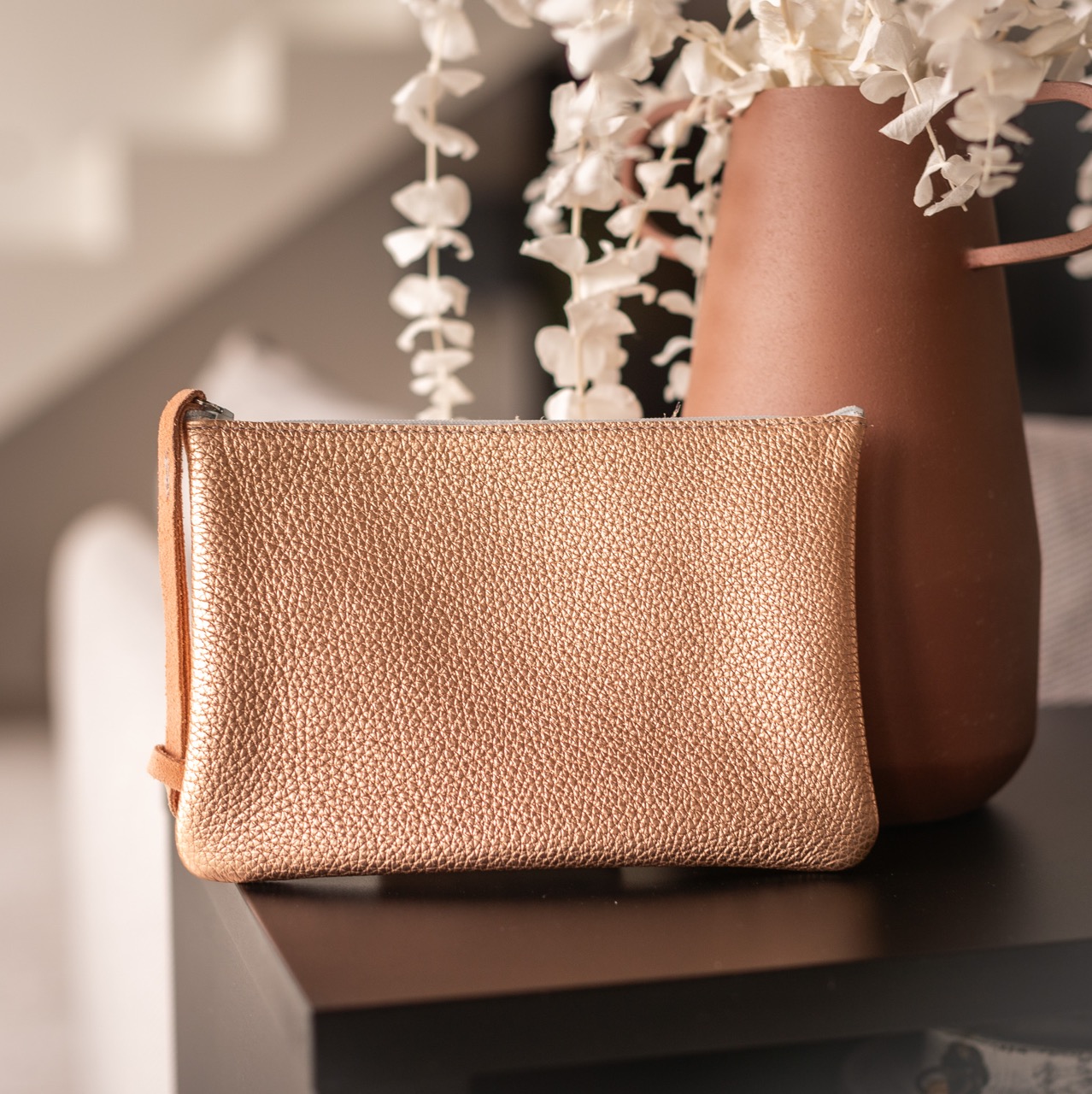Alliez élégance et praticité avec La Midi Dragonnière, la pochette en cuir imaginée et fabriquée dans notre atelier français.