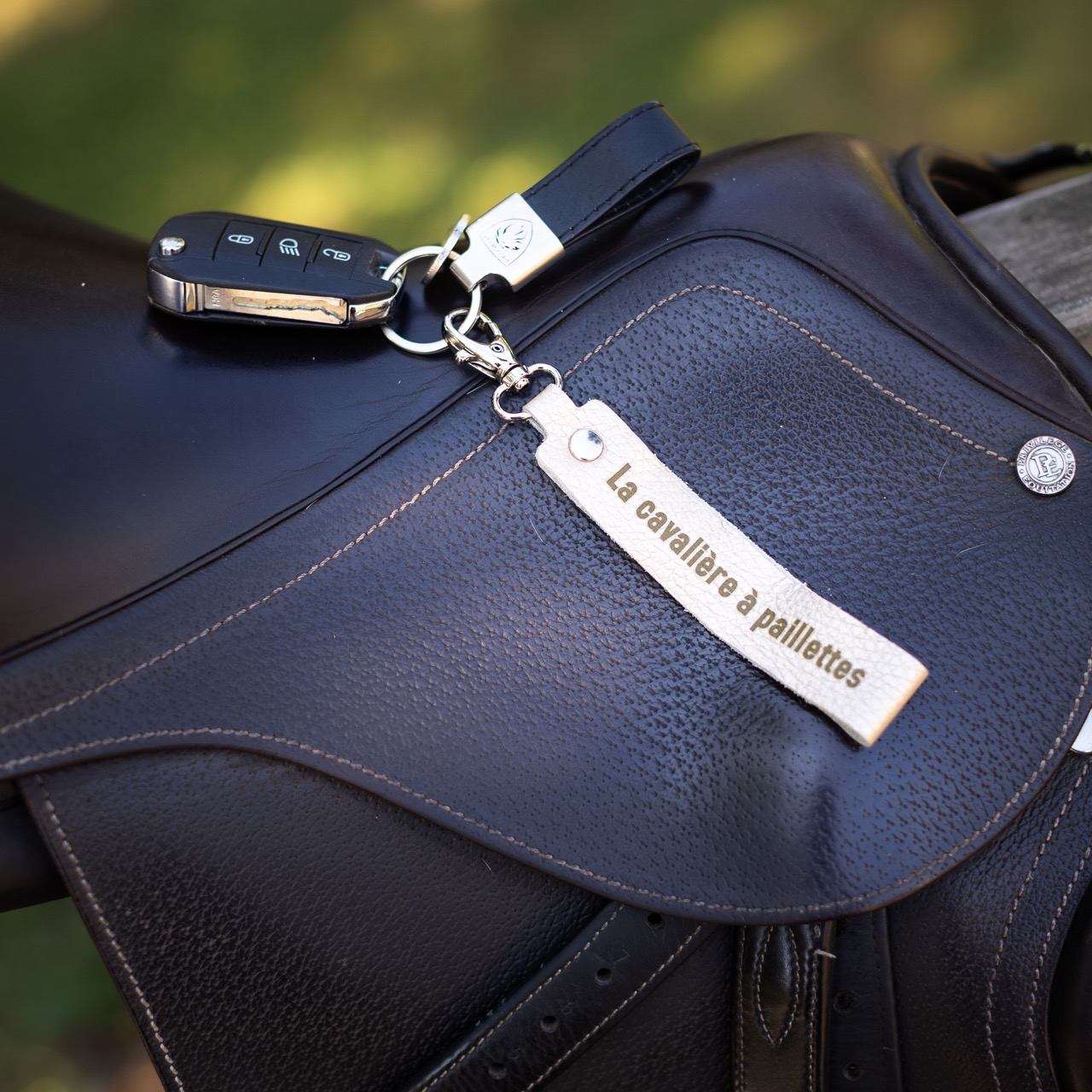 Fabriqués à la main dans notre atelier tarnais, ces porte-clés sont à la fois résistants et élégants. Leur mousqueton pratique permet de les accrocher facilement à vos clés, à votre sac ou même à votre bride.