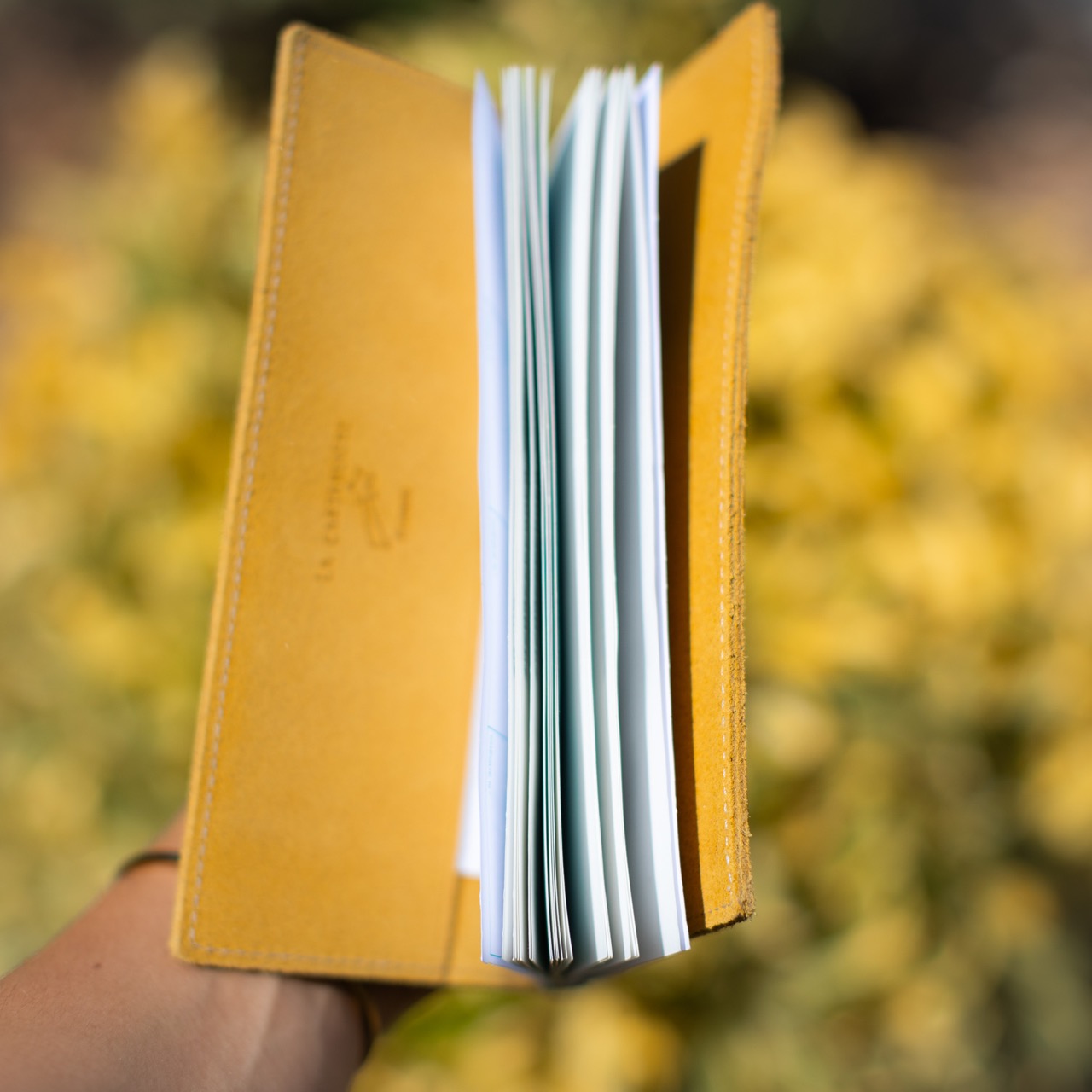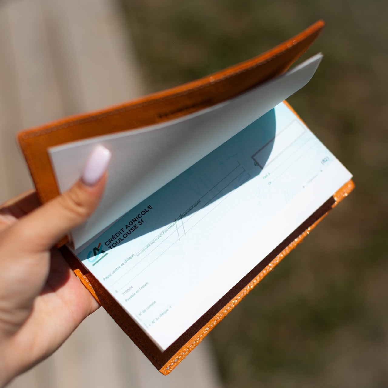 Notre best-seller : le protège chéquier avec 2 poches intérieures et le marquage à chaud « La Cartablière ».