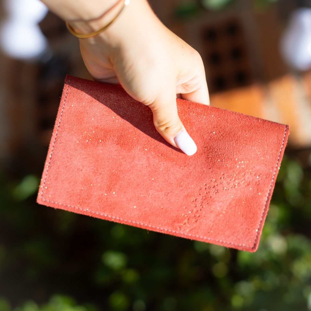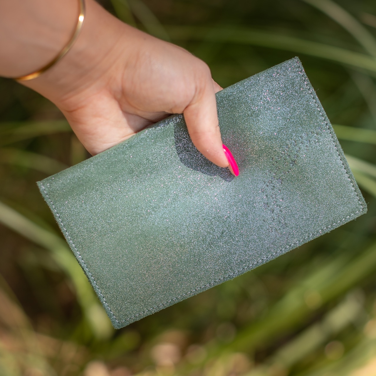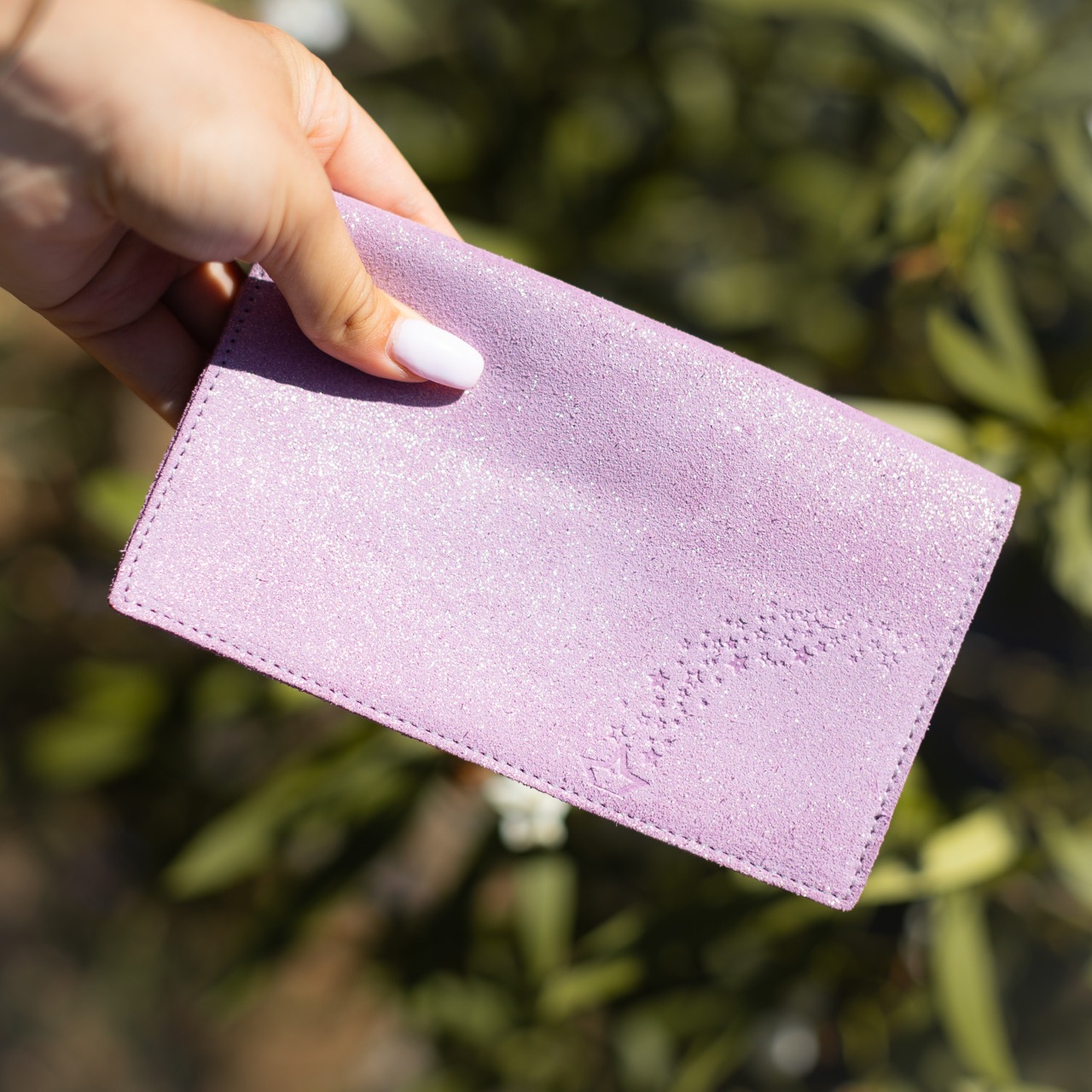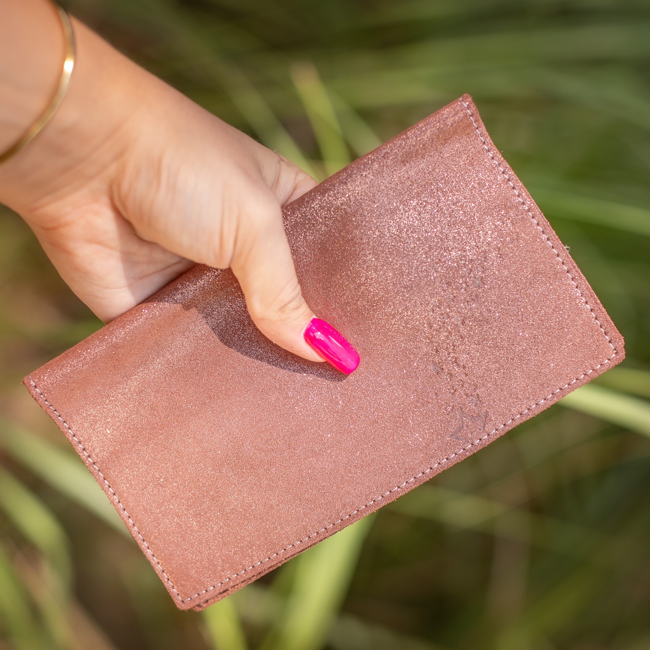 Le Cuir Pailleté, c’est un Cuir de Bovin Velours avec une paillette incrustée à chaud. De ce fait, la paillette ne se disperse pas et reste sur le produit.