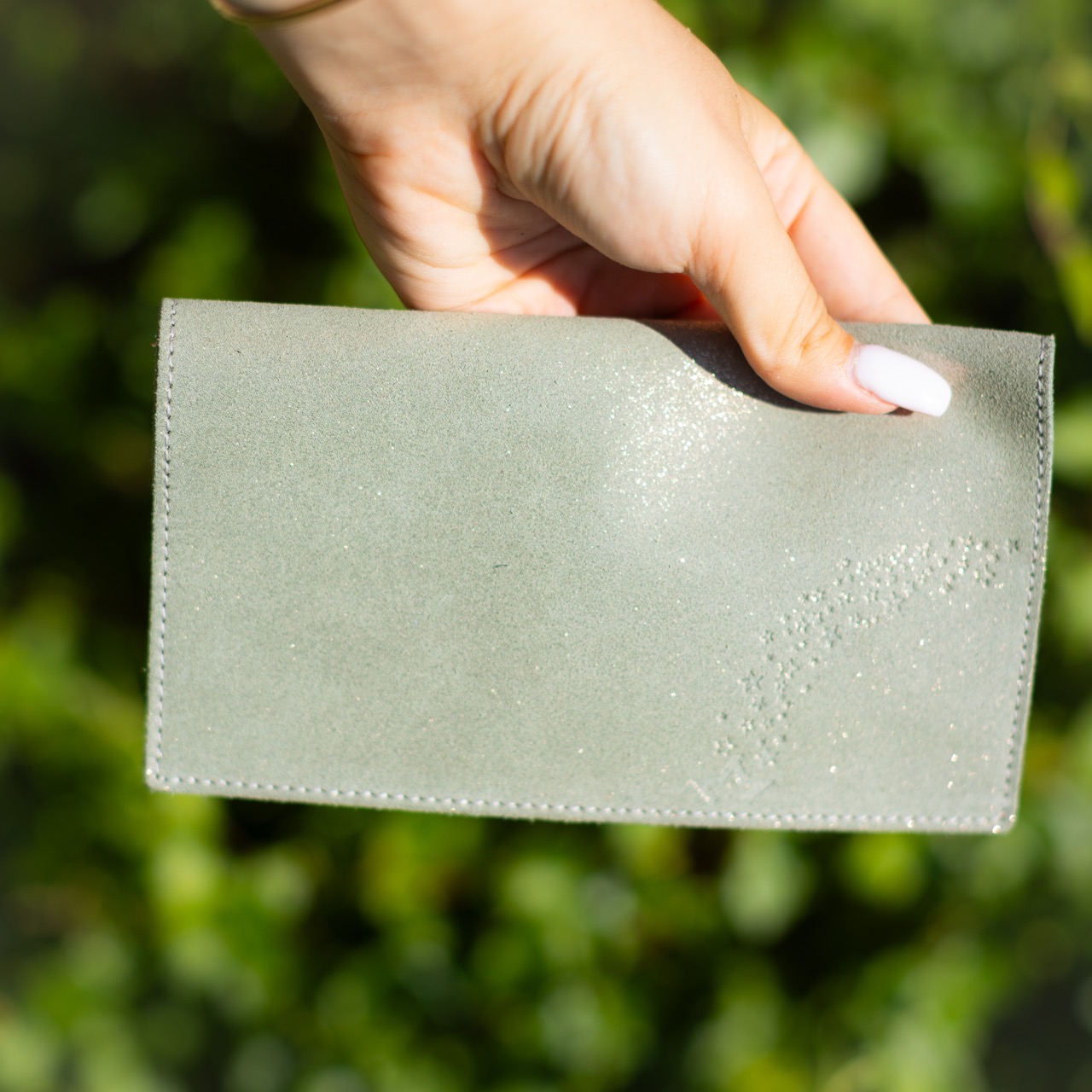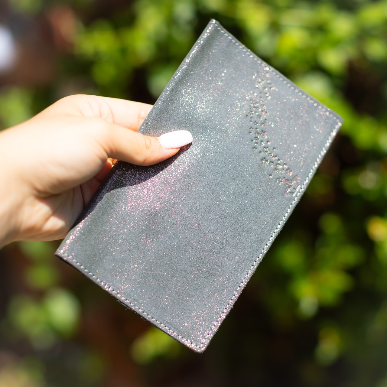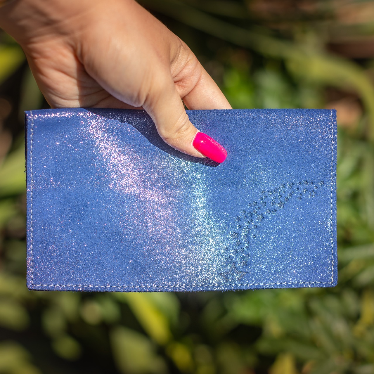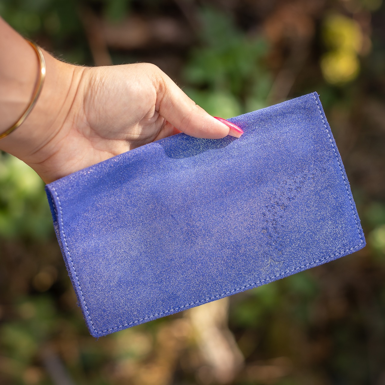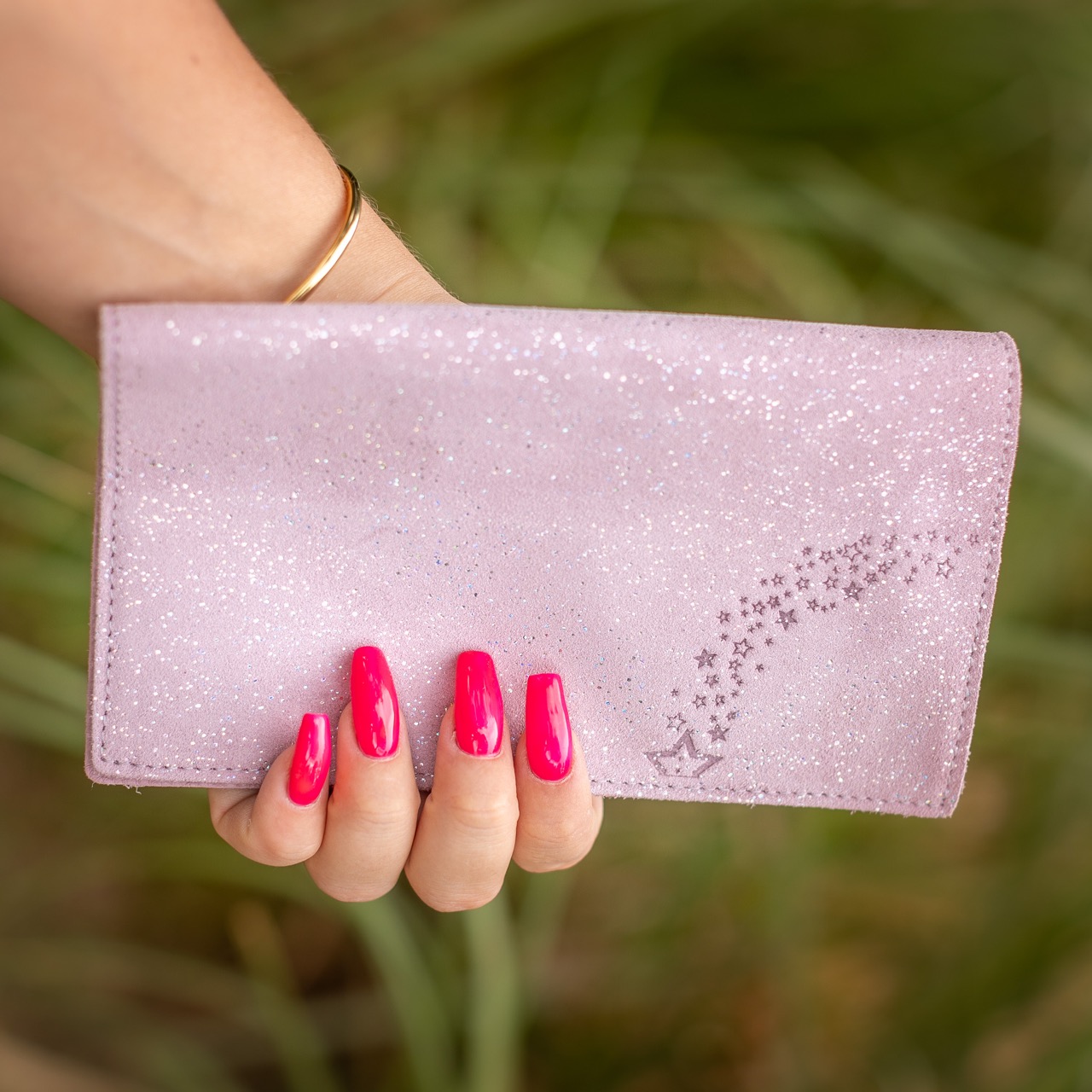Le Cuir Pailleté, c’est un Cuir de Bovin Velours avec une paillette incrustée à chaud. De ce fait, la paillette ne se disperse pas et reste sur le produit.