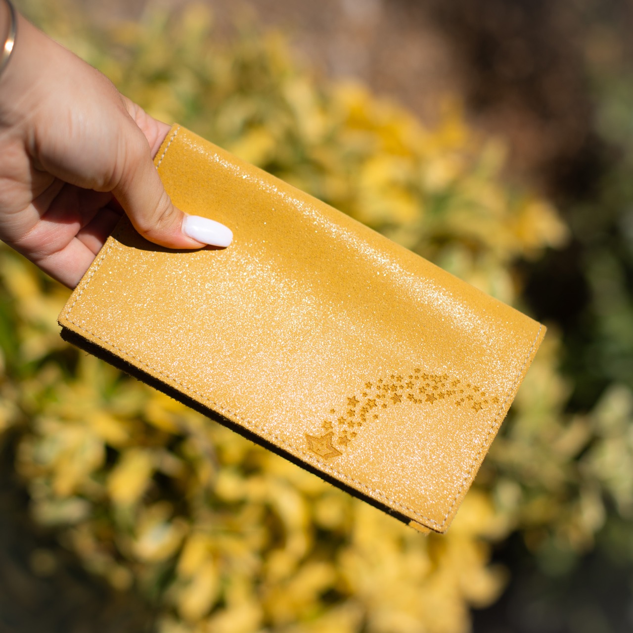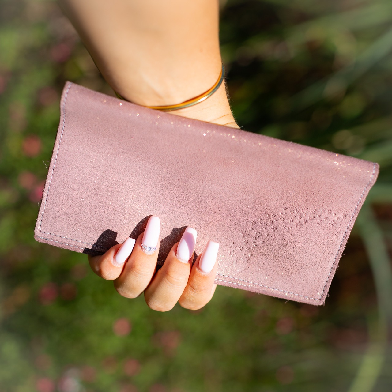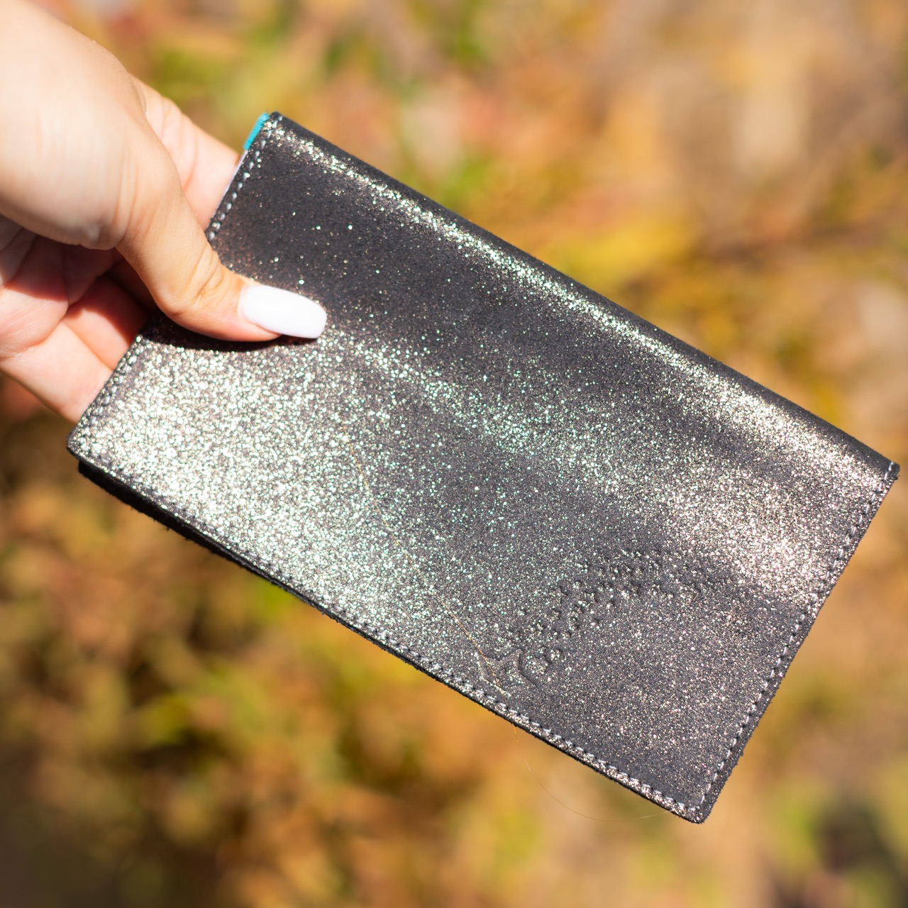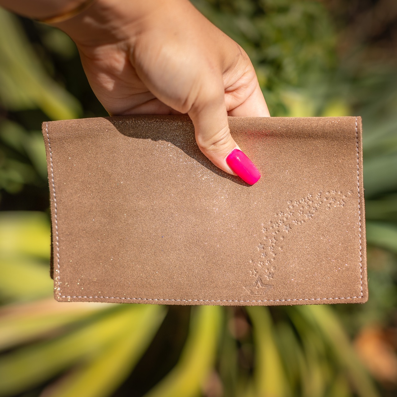 Le Cuir Pailleté, c’est un Cuir de Bovin Velours avec une paillette incrustée à chaud. De ce fait, la paillette ne se disperse pas et reste sur le produit.