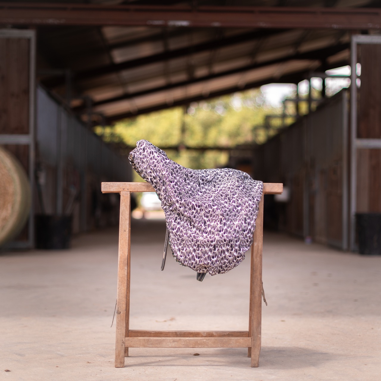Protégez votre selle avec style grâce à notre protège-selle en tissu Jacquard, une création originale La Cavalière à Paillettes.